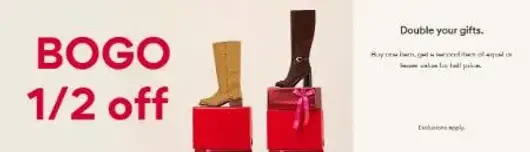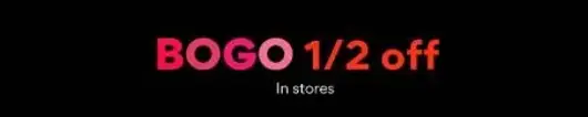 Hurry in and buy one item, get a second item of equal or lesser value for half price in store.